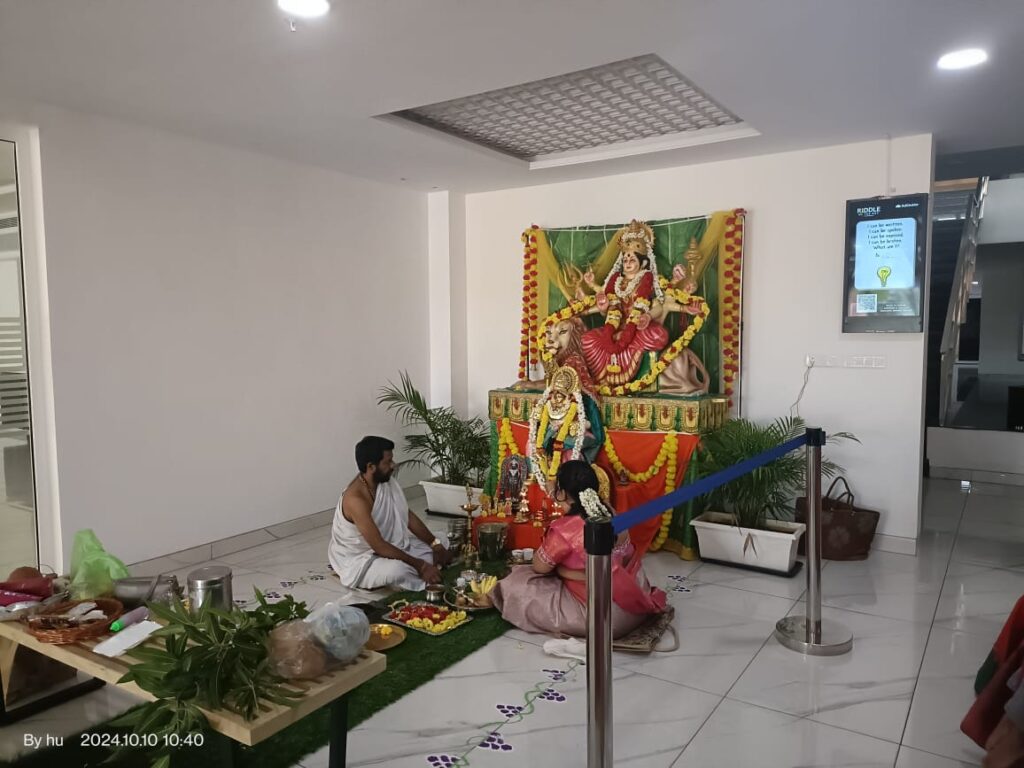 - October 10th began with Kalasha Stapana, Devi Pranapratistapane, Pooja, and Aarathi in the morning, followed by soulful Bhajans and Aarathi in the evening.